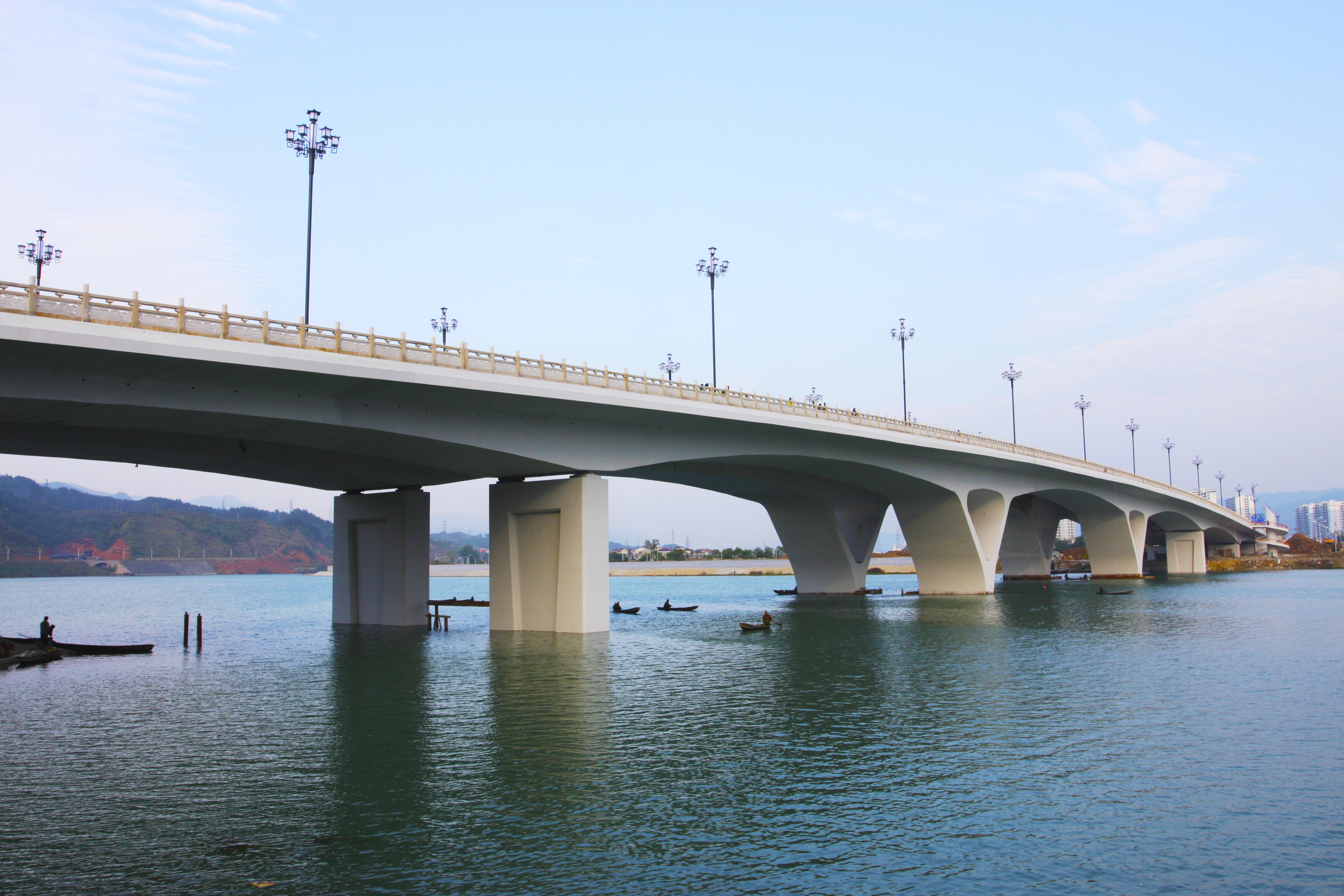 張家界市鸕鶿灣大橋是連接常張高速公路與張家界市區(qū)的重要通道。大橋長425.16m,寬33m,分左右兩幅設(shè)置箱梁,雙向六車道,是張家界市首座預(yù)應(yīng)力混凝土Y型剛構(gòu)-連續(xù)組合箱梁結(jié)構(gòu)。工程合同造價9662.19萬元。工程榮獲“全國市政金杯示范工程獎”。大橋3#、4#橋墩為Y型斜腿板式鋼筋混凝土結(jié)構(gòu),斜腿軸線與墩中心線夾角43.477°,施工過程中采用靠背支架現(xiàn)澆施工方法成功解決了該橋墩曲線多、斷面形狀復(fù)雜的技術(shù)難點。張家界市鸕鶿灣大橋?qū)τ诰徑獬菂^(qū)交通壓力,促進(jìn)經(jīng)濟(jì)和社會的協(xié)調(diào)發(fā)展具有十分重要的意義,是彰顯地方特色文化、增進(jìn)城市競爭力的重要形象工程,它的建成為張家市取得了很好的經(jīng)濟(jì)效益和社會效益。
